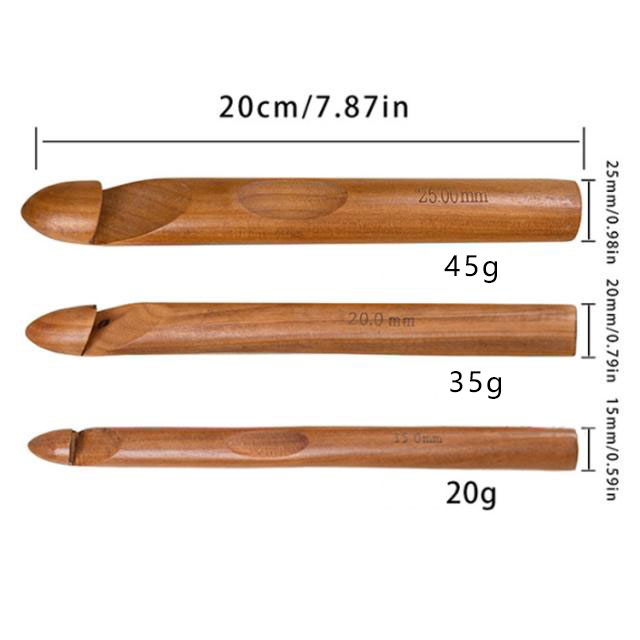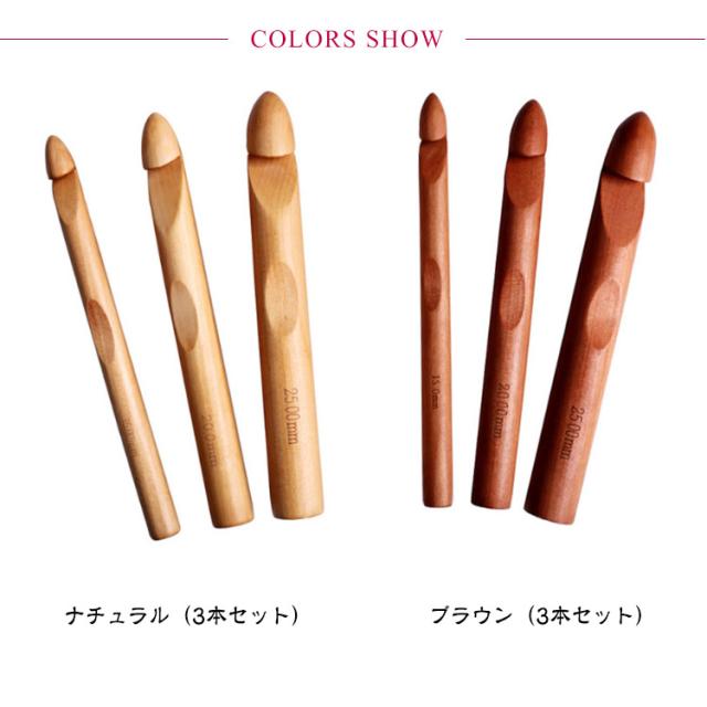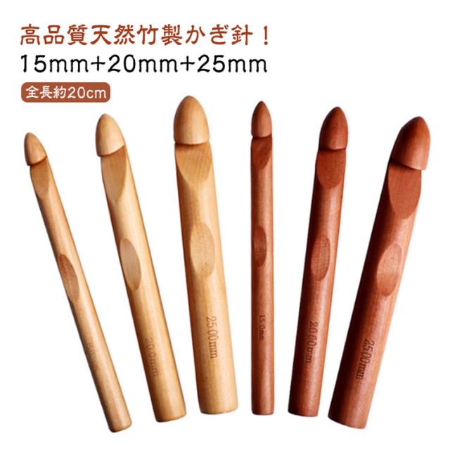 3本セット かぎ針 木製 竹製 編み針 極太かぎ針 15mm 20mm 25mm 手芸 DIY 工具 編み物 毛糸 疲れにくい 毛糸針 手編み セーター マフラー 靴下 帽子 ベスト 手芸 初心者向け 裁縫道具 棒針 手編み道具 編み物キット 極太糸も編める 極太かぎ針 高級感 オシャレ 送料無料