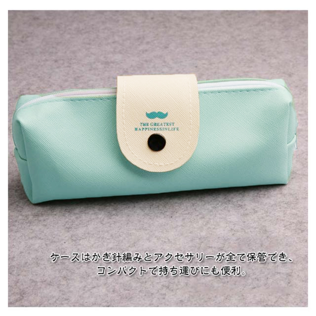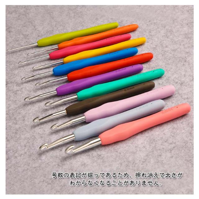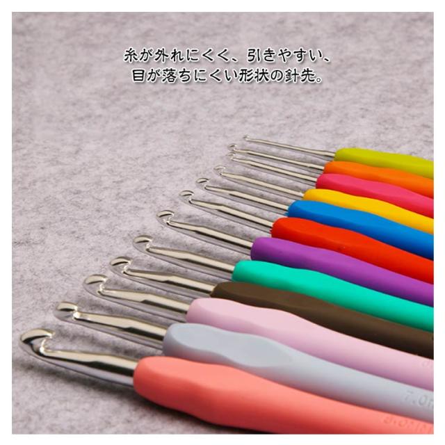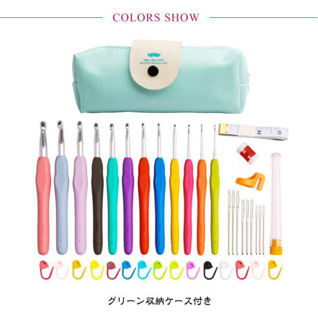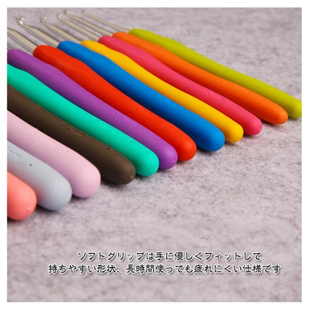 | かわいい専用ポーチ付きかぎ針セット初心者も嬉しい、かぎ針編み道具41点のお得なセットです。 ソフトグリップは手に優しくフィットして持ちやすい形状、長時間使っても疲れにくい仕様です。 糸が外れにくく、引きやすい、目が落ちにくい形状の針先。 各サイズで色分け!見た目もポップで管理がしやすい。 号数の表記が掘ってあるため、擦れ消えて太さがわからなくなることがありません。 とじ針は高品質な合金を採用、曲がりにくく滑らか、耐久性に優れています。 ケースはかぎ針編みとアクセサリーが全て保管でき、コンパクトで持ち運びにも便利。 | |