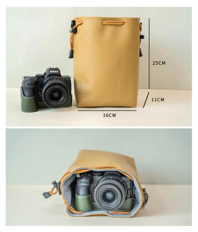 | 一眼レフ用 カメラポーチ S〜Lサイズ 開口部が大きく開き、カメラが取りやすい。 オープンポケットで小物も収納。2つのポケット付きで替えのSD CARDバッテリーやUSB、SDカードもスッキリ収納できます! バックの底面は衝撃から守るのため、厚手のクッションになっております。 トープカラーのエレガントな外観と、柔らかいレザー素材が高級感を演出し、どんな服装にも合わせやすいです。 撥水性のある生地なので万一の事態でも安心。※完全防水ではございません。 | |