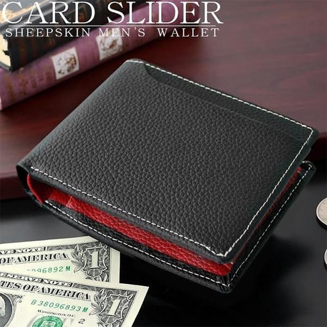 柔らか質感のシンプルメンズ短財布、羊革 シープスキン カードスライダーウォレットです。