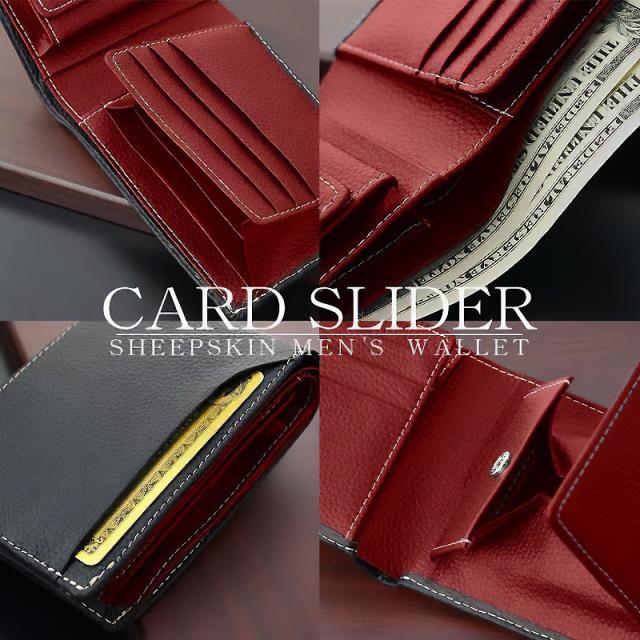 二つ折り 短財布 シープスキン カードスライダー メンズ 革 小銭入れ コインケース カード収納 レザー 羊革 コンパクト ACLAREN.co