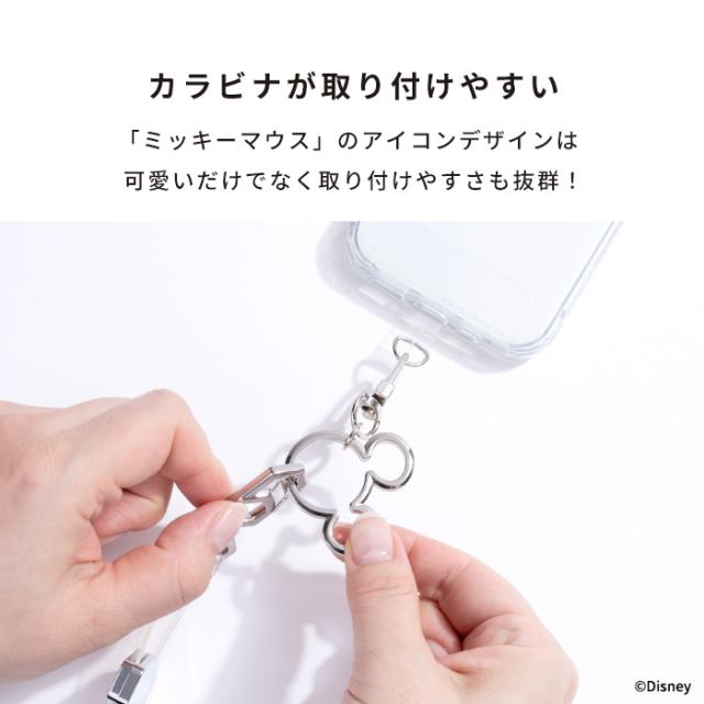 ミッキー スマホストラップホルダー シート ディズニー キャラクター ミッキーアイコン 【 ストラップホルダー メタリック 挟むだけ カラビナ 可愛い おしゃれ 落下防止 チャーム スマホ iPhone Android 携帯 各種スマートフォン対応 Hamee 】