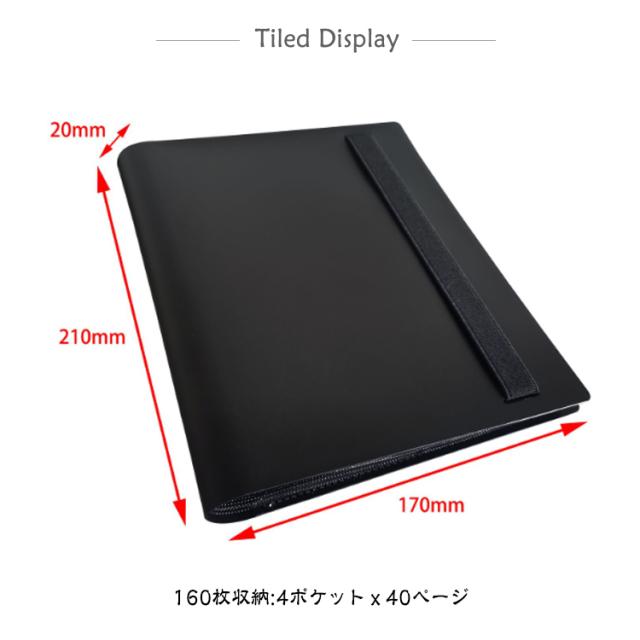 | サイズについての説明 | 160枚収納:4ポケットx40ページ / 360枚収納:9ポケットx40ページ ※商品のサイズは手作業で測定させて頂いておりますので、若干の誤差があります。 |