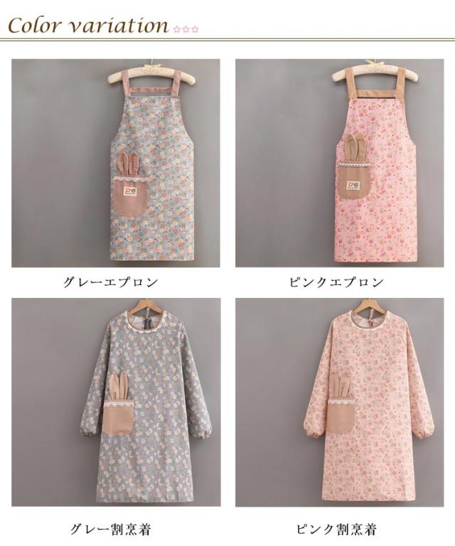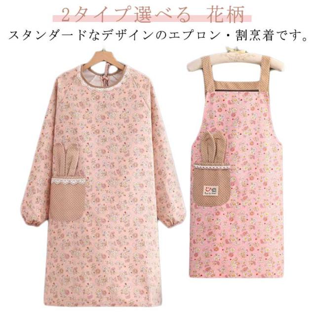 割烹着 保育士 幼稚園 2タイプ選べる かわいい おしゃれ かっぽう着 かっぽう着 可愛いウサギ耳ポケット 花柄 エプロン 介護士 看護師 大人用 かっぽうぎ