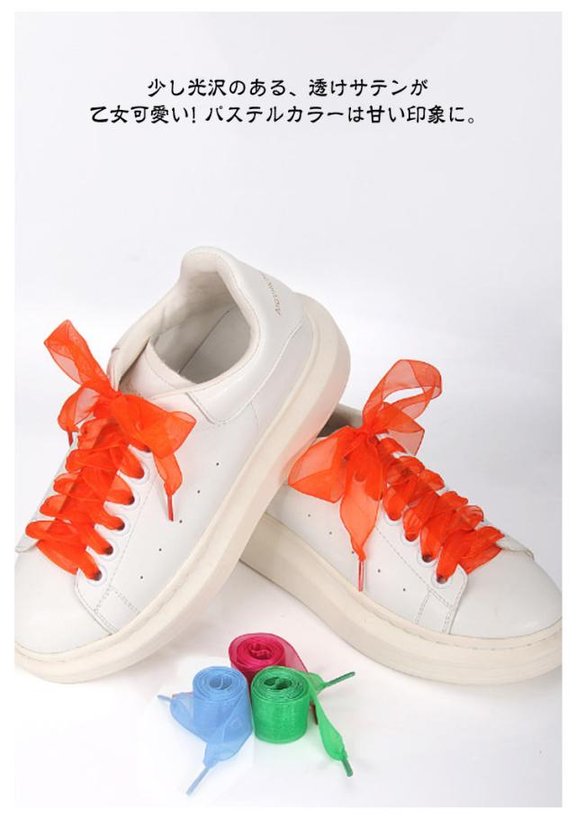 【長さ120cm 8本セット】 靴紐 全20色 おしゃれ リボン 靴ひも 白 紫 シューレース 太め 可愛い 幅広 長い 幅3.5cm 子供 女性 女の子 くつひも シアー 透明 レース レース紐 ガーリー かわいい 靴 スニーカー シューズ 紐 レディース