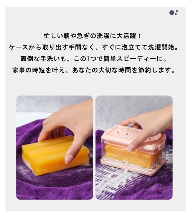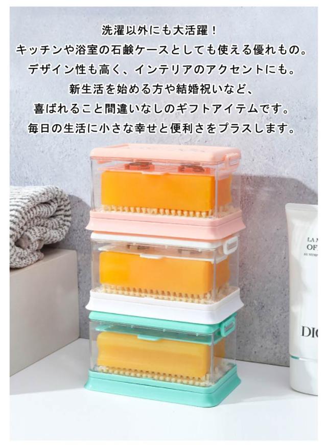 | 洗濯ブラシと石鹸ケースが一体化した画期的な設計! 石鹸を入れてコロコロ転がすだけで、ふわふわの泡が立つ魔法のようなケースです。洗濯の時間が楽しくなること間違いなし! 通気性抜群の設計で、ケース内部はいつでもサラサラ。カビや臭いとはおさらばです。付属の専用トレーで水滴をキャッチし、洗面台やシンクを濡らす心配もありません。清潔さを保ちながら、ストレスフリーな毎日をお届けします。 賢い主婦の味方! 特殊なバネ式構造により、石鹸が小さくなっても最後の1片まで無駄なく使えます。もう石鹸の残りを捨てる罪悪感とはサヨナラ。環境にも家計にも優しい、エコな洗濯ライフをサポートします。 忙しい朝や急ぎの洗濯に大活躍! ケースから取り出す手間なく、すぐに泡立てて洗濯開始。面倒な手洗いも、この1つで簡単スピーディーに。家事の時短を叶え、あなたの大切な時間を節約します。 洗濯以外にも大活躍! キッチンや浴室の石鹸ケースとしても使える優れもの。デザイン性も高く、インテリアのアクセントにも。新生活を始める方や結婚祝いなど、喜ばれること間違いなしのギフトアイテムです。毎日の生活に小さな幸せと便利さをプラスします。 | |