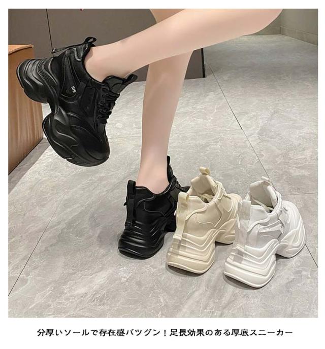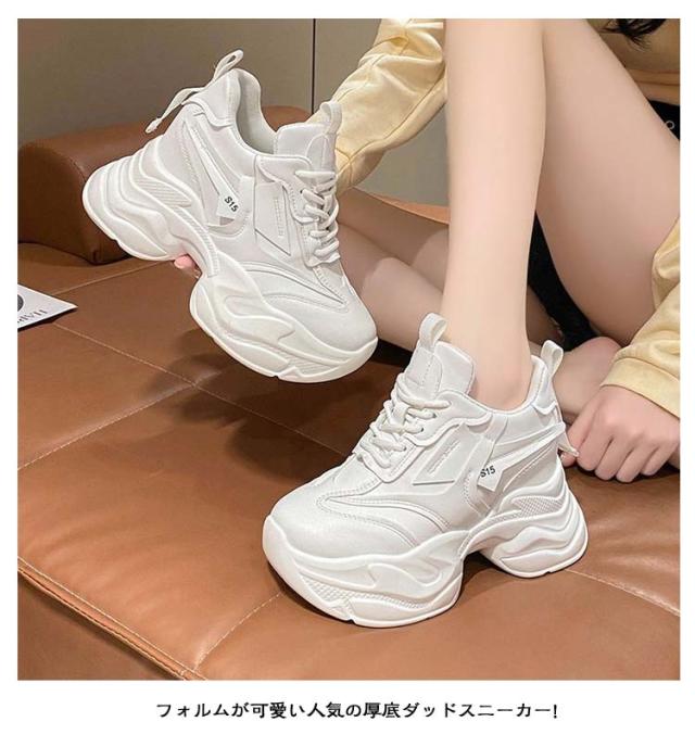 | ヒール10cm 厚底スニーカー 22-25cm 普段のカジュアルコーデからスポティーなスタイルにピッタリ! 分厚いソールで存在感バツグン!足長効果のある厚底スニーカー フォルムが可愛い人気の厚底ダッドスニーカー! 足元が脚を華奢に魅せてくれます。 インソール入りで、スタイルアップできちゃう美脚効果大の万能スニーカー☆ | |