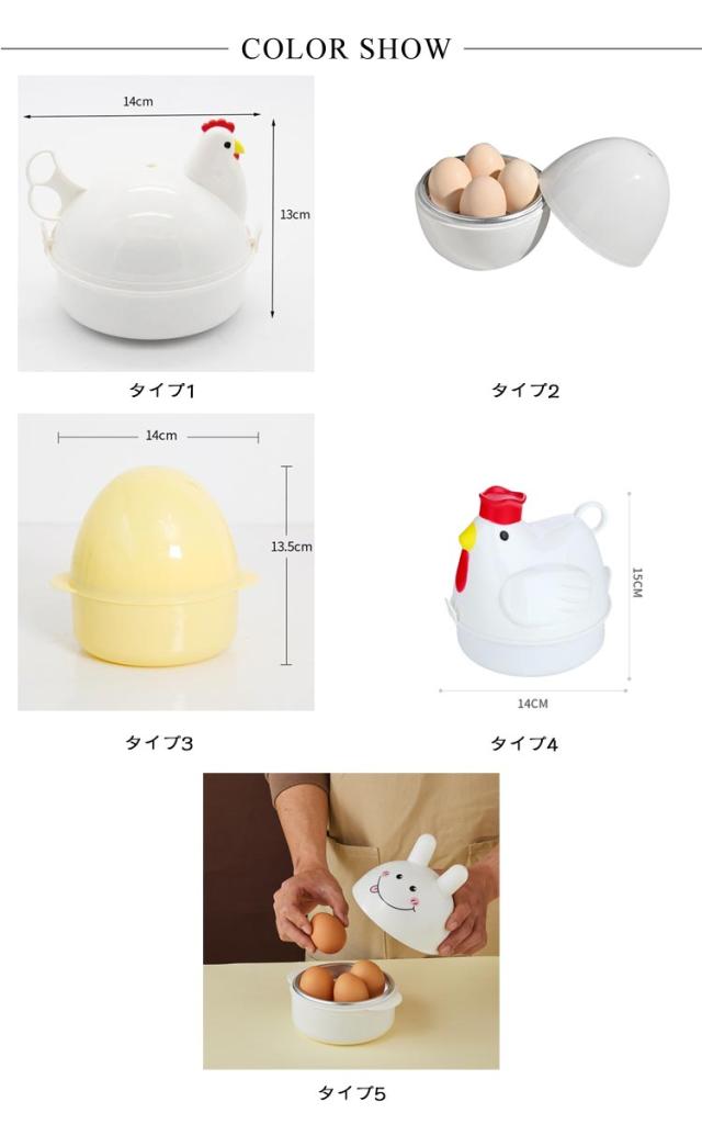 4個 レンジ 最大4個 半熟 グッズ 2個 ゆでたまご 1個 電子レンジ エッグクッカー ゆでたまごメーカー エッグスチーマー ゆで卵 選べる5種類 ゆで卵器 ゆで卵メーカー 固茹で 固ゆで 簡単 軽量 ゆでたまごレンジ かわいい めんどり