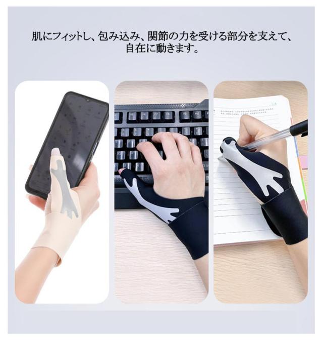 サポーター 保護 【2枚セット】 固定 突き指 指 親指 関節炎 軽減 手首サポーター 関節サポーター 【2枚セット】 ハンドケア 洗える 指サポーター 手 2枚組 痛み 薄手 家事 水仕事 安定 便利 グッズ お医者さん用 スポーツ 運動 テニス グローブ ベージュ ブラック