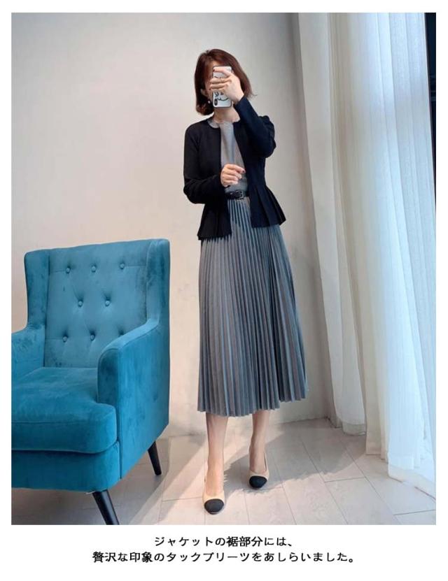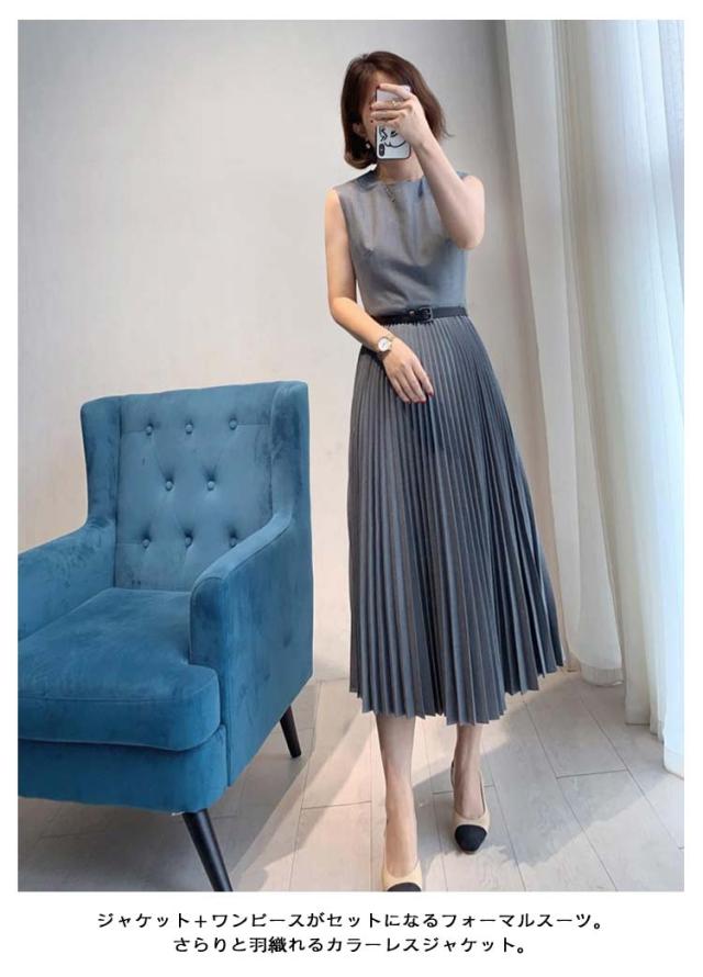 入学式 レディース ママスーツ 上品スーツ プリーツワンピース フォーマルスーツ ジャケット 母親 七五三 結婚式 卒業式 ワンピーススーツ セットアップ お宮参り フォーマルスーツ セレモニースーツ 参観日 黒 母 女性 服装 オフィス 通勤 フォーマル