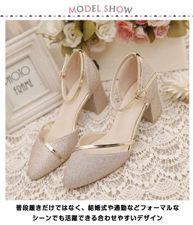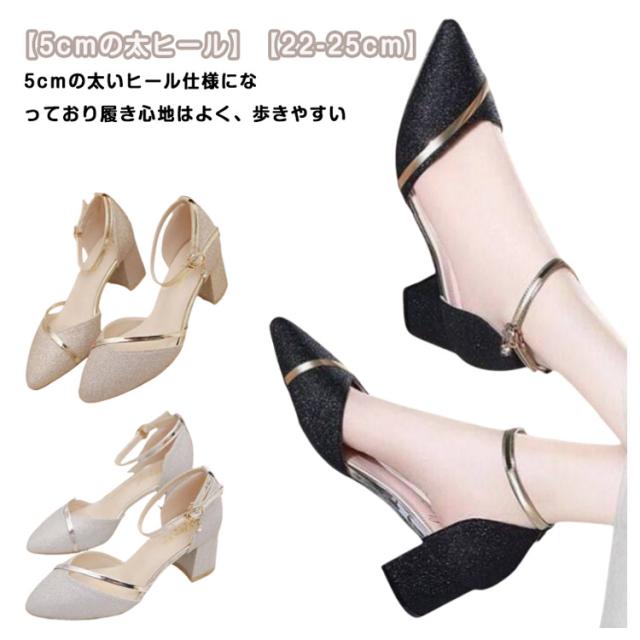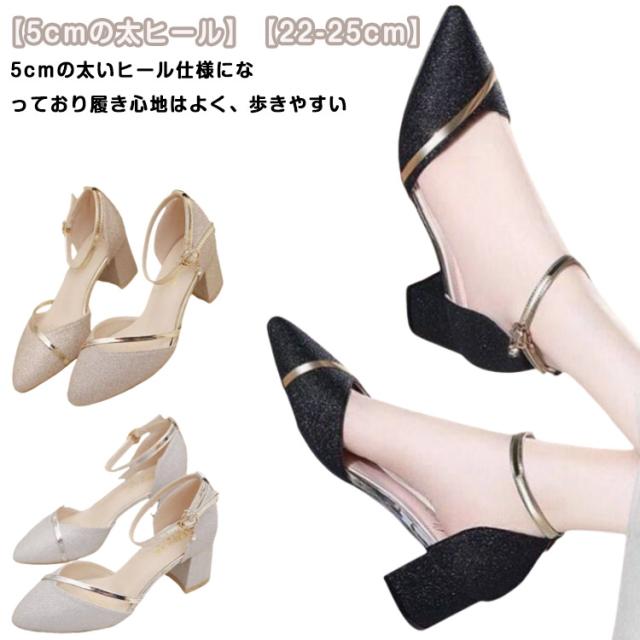 ゴールド イベント 結婚式 ピアノ ヒール ブラック 5cm 発表会 シルバー レディース キラキラ パンプス 22-25cm 上品 ゴージャス 夏 アンクルストラップ 綺麗め パーティー シューズ 靴 太ヒール 走れる パンプス ストラップパンプス 歩きやすい 春 パンプス 秋