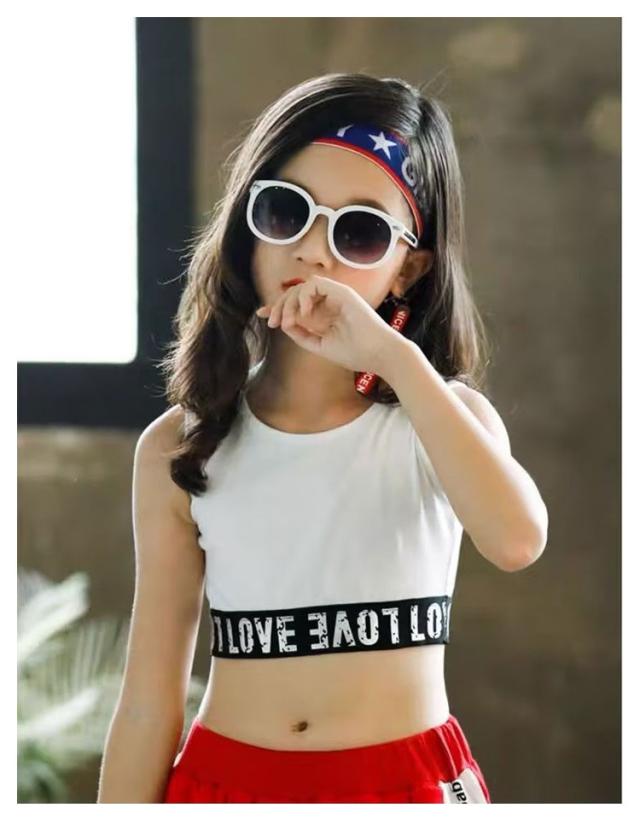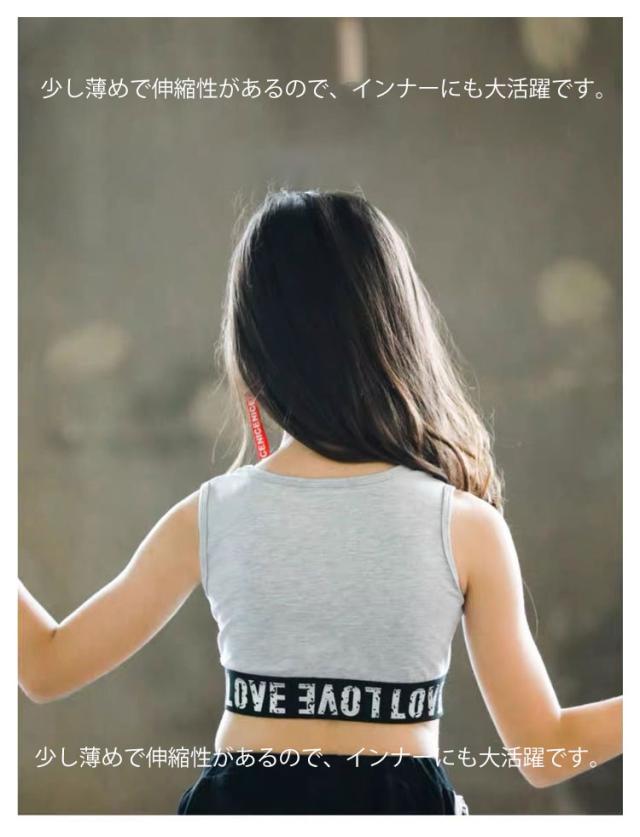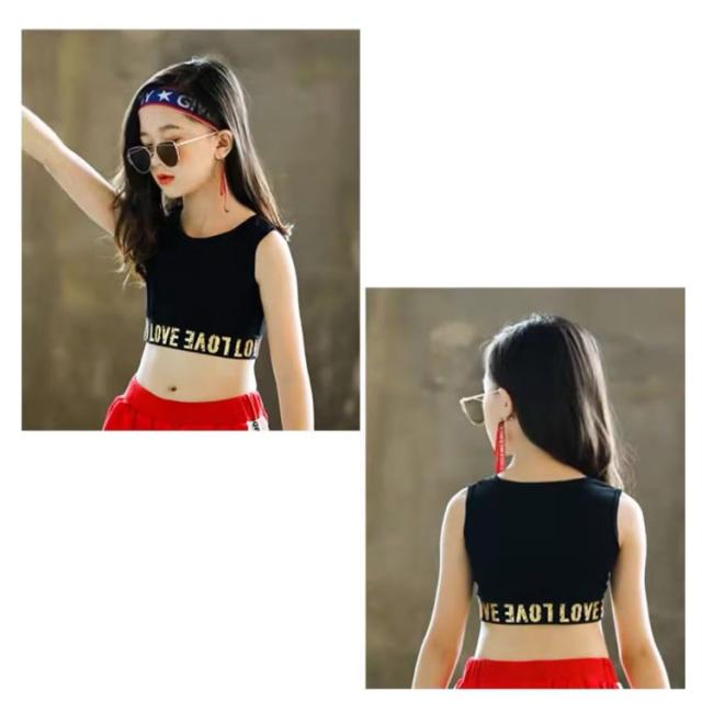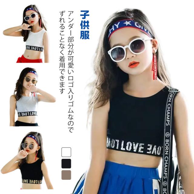 ジャズダンス へそ出し ロゴ ガールズ ハーフトップ 子供服 ロゴ スポーツ キッズ ステージ衣装 キ 重ね着 ャミソール ダンス 黒 ノースリーブ かわいい タンクトップ ヒップホップ kpop 韓国 子供服 ストリート 子供
