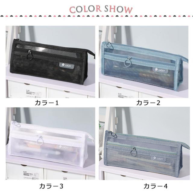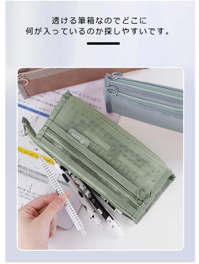 | 丈夫なナイロンメッシュ素材で長持ちできる! 派手すぎない地味すぎないお洒落なペンケース2個セット。 メッシュ生地だから滑りにくく半透明で中身の確認ができる。 友達とお揃いも素敵な透明ペンケース。受験用にも大活躍! ファスナーの開け閉めのスームズ。 収納力が抜群です! 透ける筆箱なのでどこに何が入っているのか探しやすいです。 しんぷるでオシャレなデザイン構造のぺんけーすなので、男の子や女の子、小学生の子供も文房具の収納に使えます。 | |