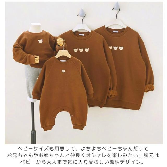 ロンパース ペアルック 写真 親子 娘 男の子 女の子 息子 ペア パパ ママ トレーナー 赤ちゃん 出産祝い コーデ リンクコーデ 親子 クマちゃん カップル 双子 長袖 お揃い おそろい 兄弟 姉妹 ベビー 家族 親子ペア くま 熊 春 秋