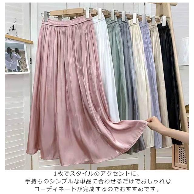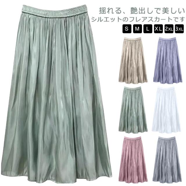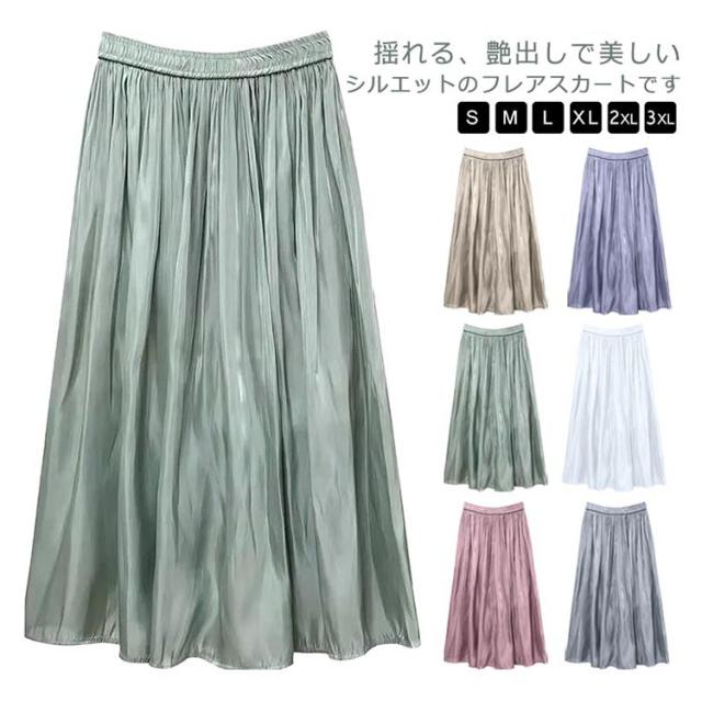プリーツスカート 光沢感 エレガント 大きいサイズ 夏 スカート ロングスカート フレアスカート 揺れるスカート ロング M フェミニン 春 シフォン ?せ見え S ボトムス L XL 2XL 3XL
