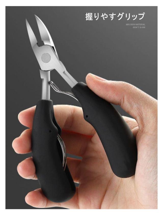 | 2個セット ニッパー式 爪切り 厚い爪、巻き爪も楽々カット 握りやすグリップ 巻き爪の両端も切れる 軽い力でよく切れる | |