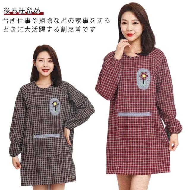 | 台所仕事や掃除などの家事をするときに大活躍する割烹着です。 ゴム入りの袖で家事もラクラク! 窮屈感のない着心地で、動きやすさも抜群。 ポケット付きで収納便利です。 サッとかぶり腰ヒモを結ぶだけで脱着可能。 お料理や家事用のエプロンとしてはもちろん、ガーデニング時などにも活躍。 | |
