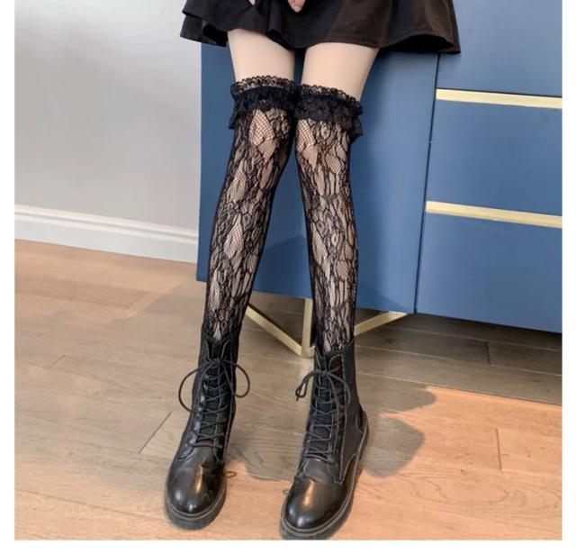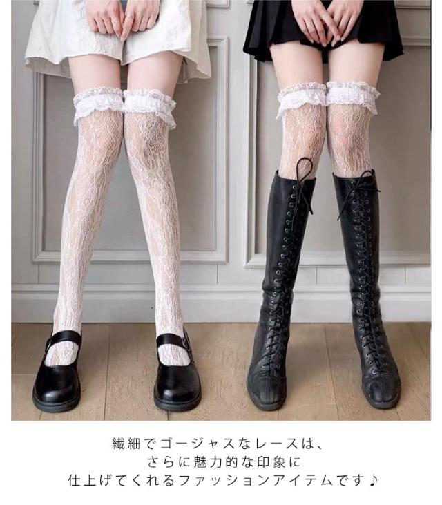 可愛い 量産型 靴下 地雷系 リポン付き 伸縮性 透け感 ストッキング 姫系 ノンスリップ レディース ニーハイソックス cosplay ハイソックス ロリータ レース付き 制服用 通学 パーティ 発表会 卒業式 コスプレ