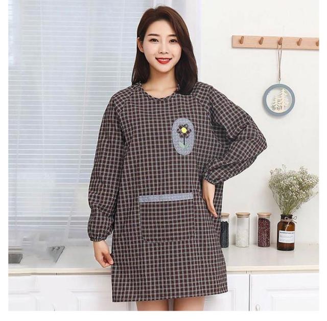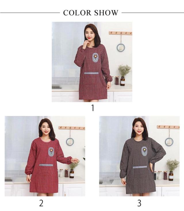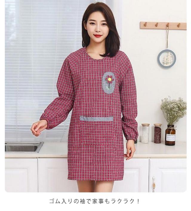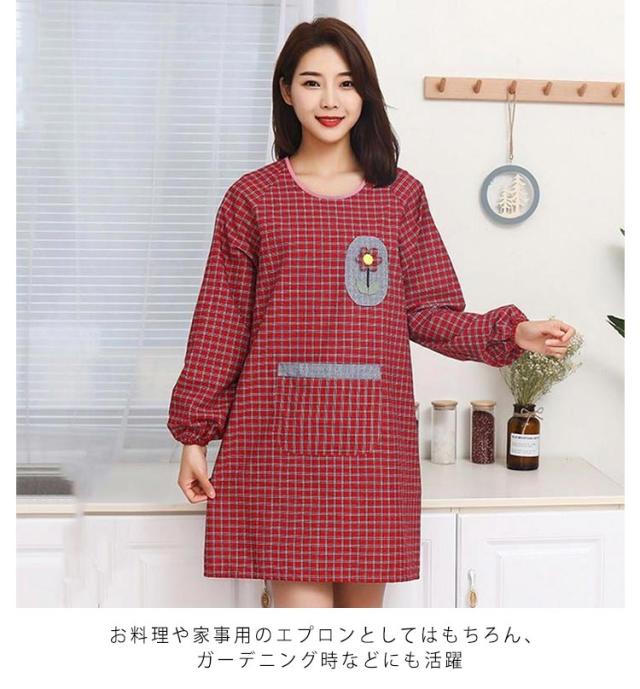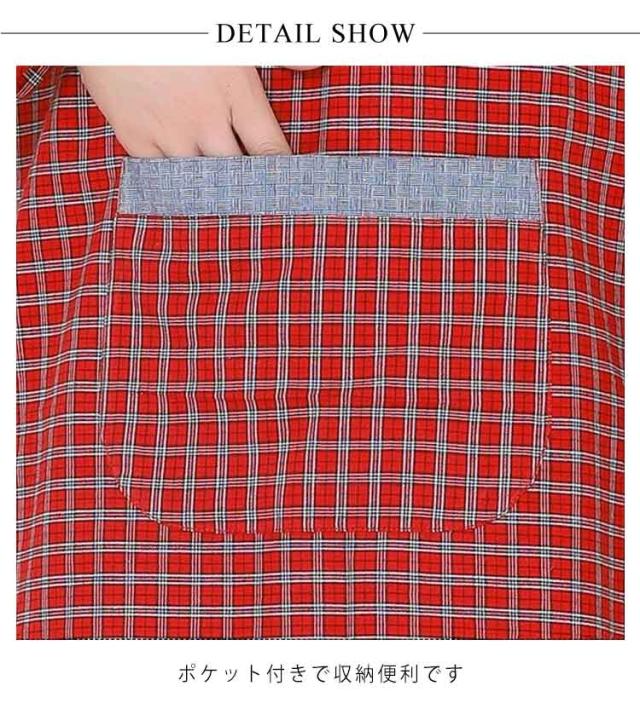 後ろ紐留め 汚れ防止 メンズ 割烹着 袖付き レディース 大きいサイズ チェック柄 キッチン用 ポケット付き エプロン 料理教室 保育士 ポケット付き ガーデニング 割烹着 防油 作業用 ワーク服 男女兼用