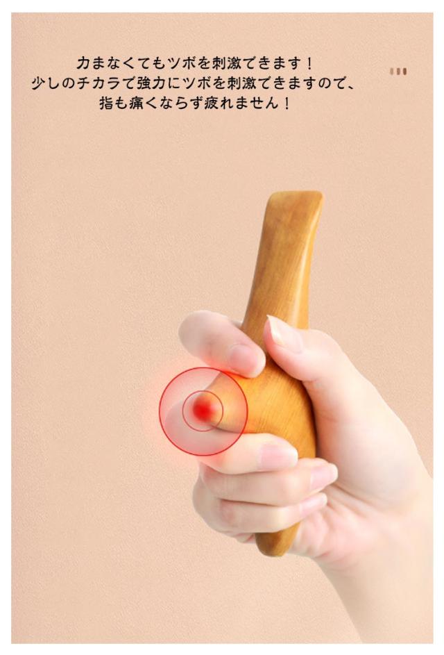 | 【ツボ押し棒】【天然木】 握りやすく使いやすいデザインです! セルフケアがしやすい特殊形状で、プロ級の指圧がご自身でお手軽にできちゃいます! 力まなくてもツボを刺激できます! 少しのチカラで強力にツボを刺激できますので、指も痛くならず疲れません! 体中のツボやリンパを刺激できます! 先端の突起で強指圧、カーブ部分で流せます。あらゆる体のツボやリンパを刺激できます! 天然木で優しい肌触りを実感! 個性豊かな天然木を加工しましたs.優しい肌触りと自然なフィット感で手に馴染みます! 肩・首・背中・腰・ふくらはぎ・足裏等、あらゆる箇所のお悩みに対応。 小型・軽量ですので、常時携帯してもストレスになりません。 マッサージ・リンパ流し・ツボ押し等様々な用途にご活用下さい。 | |