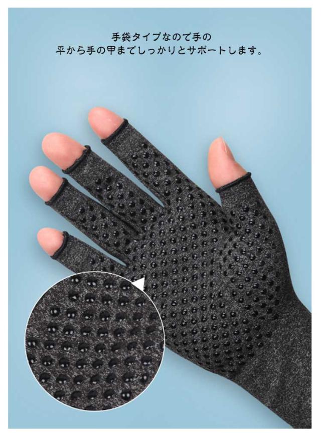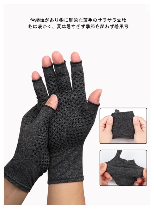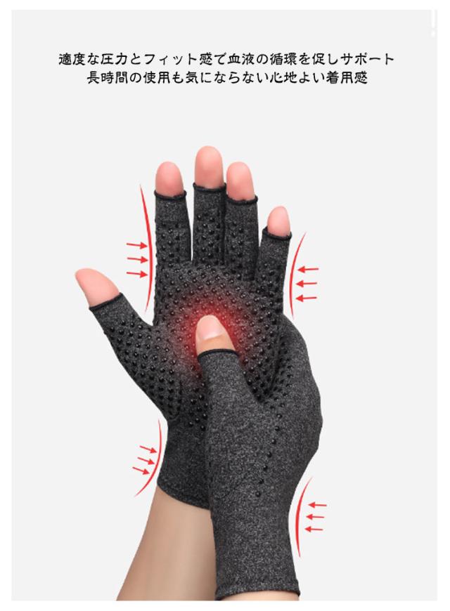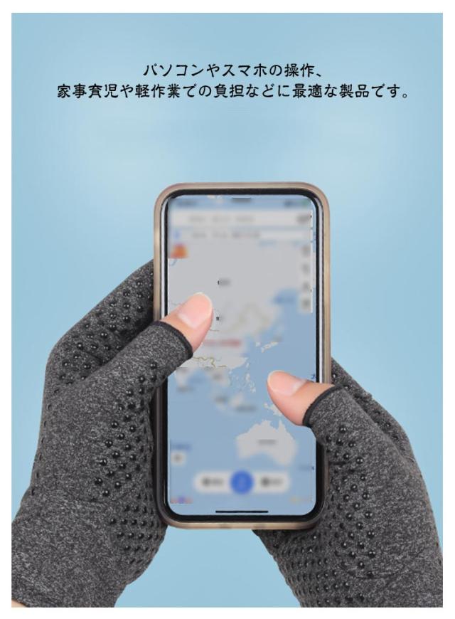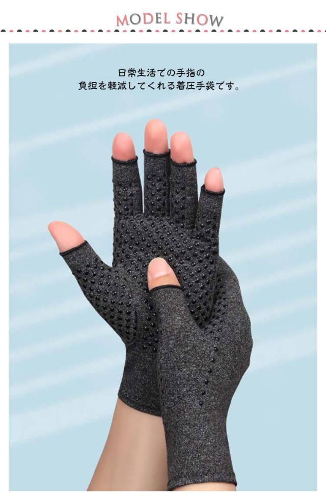 | 【着圧手袋】【手指のサポーター】 日常生活での手指の負担を軽減してくれる着圧手袋です。 パソコンやスマホの操作、家事育児や軽作業での負担などに最適な製品です。 手袋タイプなので手の平から手の甲までしっかりとサポートします。 滑り止め無しと滑り止めありの2タイプをご用意しております。 適度な圧力とフィット感で血液の循環を促しサポート 長時間の使用も気にならない心地よい着用感 手首まで包み込むしっかりとした長さで 手首の痛みや手の冷え予防にも 伸縮性があり指に馴染む薄手のサラサラ生地 冬は暖かく、夏は暑すぎず季節を問わず着用可 洗濯できる素材なのでいつでも清潔 汚れや匂いを気にせす長く使える | |