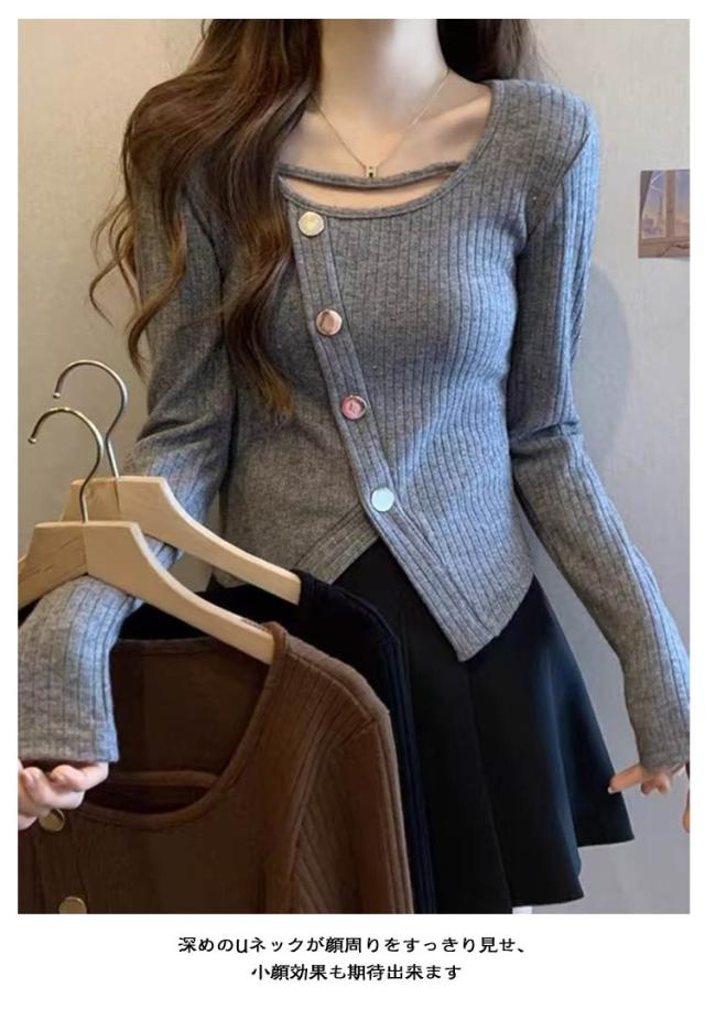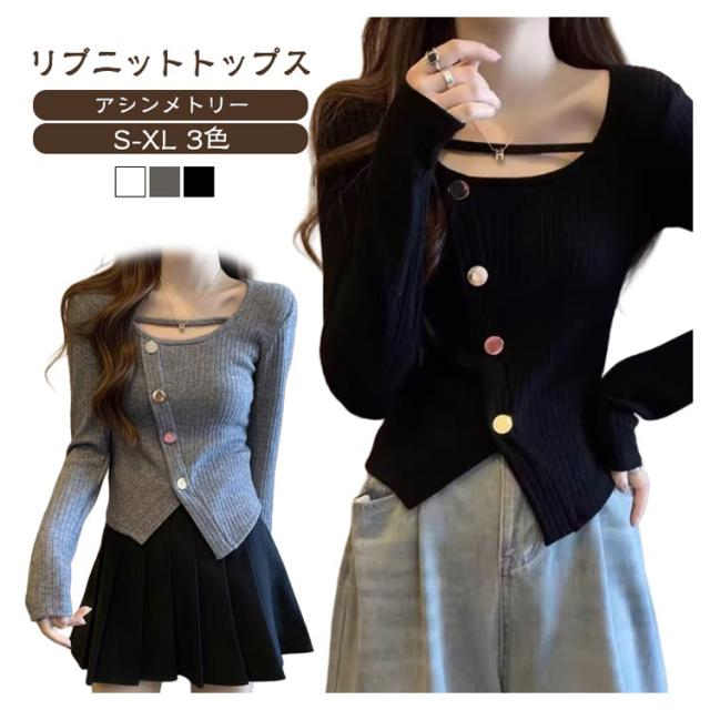 秋 アシンメトリー セーター セクシー トップス 長袖 ブラウス 冬 かわいい リブ 大人 オフィス トップス ニット カットソー 春 韓国風 通勤 20代 30代 40代 OL レディース ファッション ぽっちゃり ゆったり カジュアル