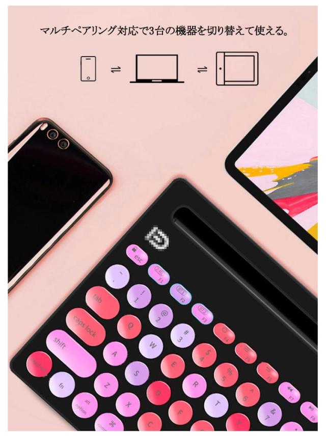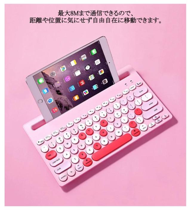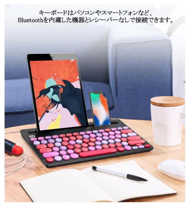 ワイヤレス キーボード 持ち運び レシバー付き スマホ かわいい おしゃれ スリム 無線 丸いキー ワイヤレス 薄型 電池式 静音 小型 軽量 カラフル ワイヤレスキーボー スマホスタンド付き iPad タブレット パソコン PC Mac/Windows/Laptopに対応 女性用