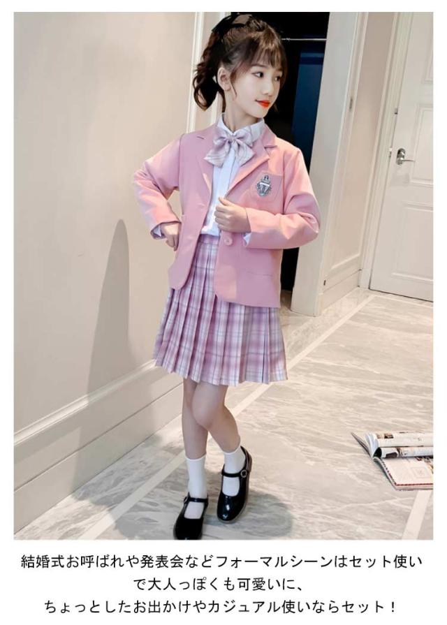 女の子 蝶ネクタイ プリーツスカート 子供服 スカート 卒園式 卒業式 入学式 スーツ ジャケット ジャケット 長袖シャツ 入学式 3点セット フォーマルスーツ 可愛い 大きいサイズ ジュニア チェック柄 ジュニア服 七五三 発表会 カジュアル 普段着 ギフト プレゼント