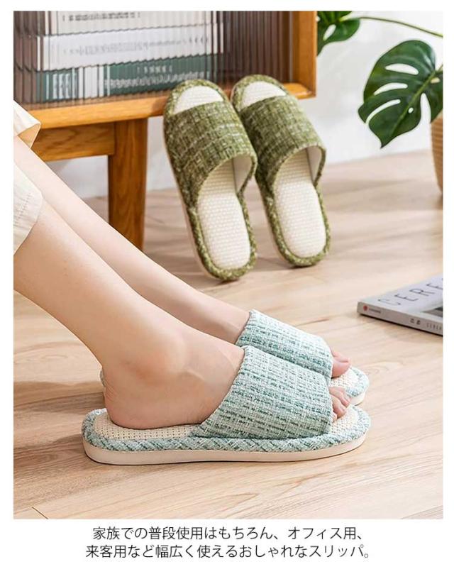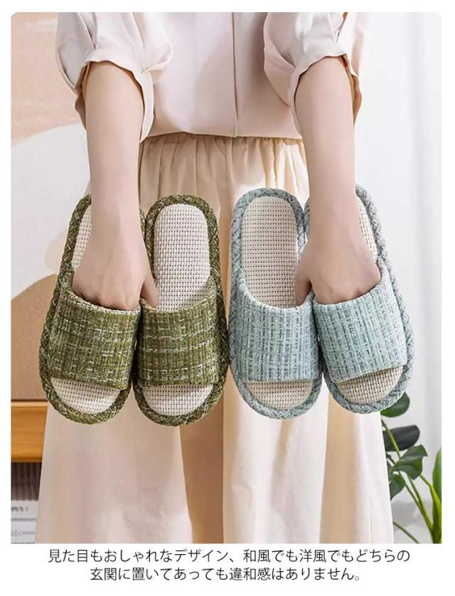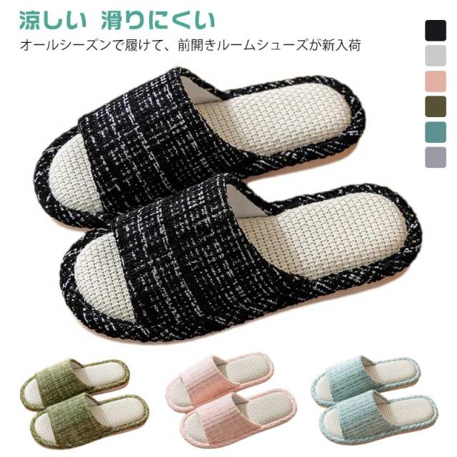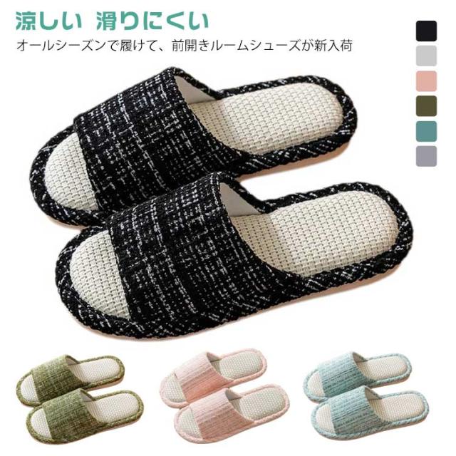 自宅用 ルームスリッパ ルームシューズ スリッパ 室内用 サンダル 前開きスリッパ 春秋 室内 夏用 麻 涼しい スリッパ リネンスリッパ 来客用 夏用 レディース 滑りにくい 履きやすい おしゃれ 軽量 前開きスリッパ ルームシューズ 可愛い 洗濯可 無地 シンプル