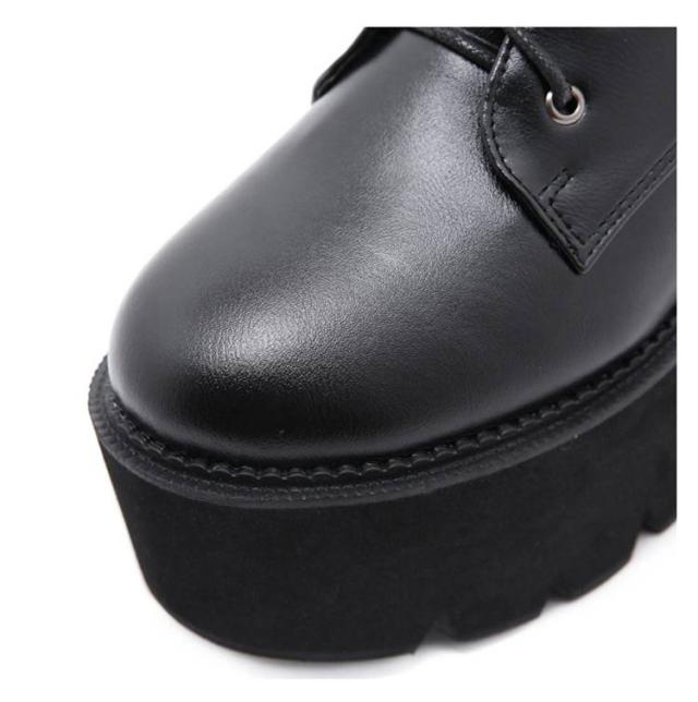 | 脚をすらりと長く見せてくれる厚底ショートブーツ。 【長時間歩いても疲れない】太ヒールは体重をしっかりと支えてくれるので、安定感がさらに増し、旅行などで長時間歩いても疲れにくいです。 【履き心地抜群】内側には手触りの良い素材て、軽量でクッション性、グリップ力があり、快適な履き心地です♪ 【履き脱ぎ簡単】サイド側にジッパーが付いているので、着脱も便利です。 | |
