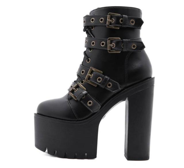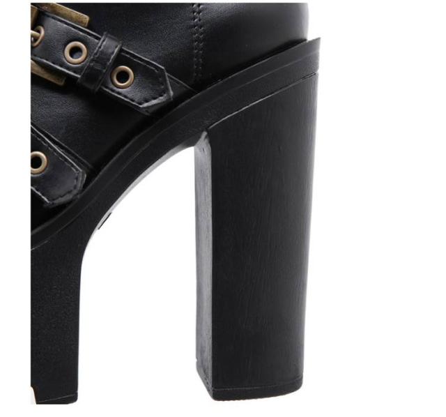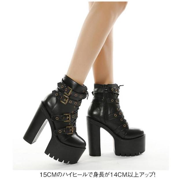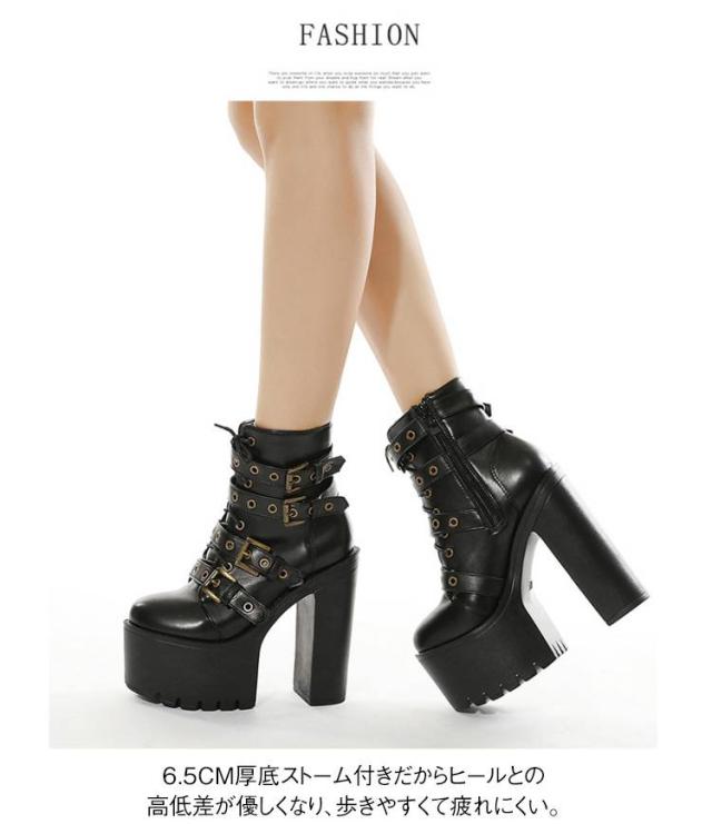 15cm レディース リベットブーツ 超ハイヒール 美脚 ショートブーツ 秋冬 パーティー リベットブーツ ヒールブーツ 太めヒール ベルト風 大きサイズ 安定感 コスプレ イベント ハロウィン 仮装 厚底靴 ハイヒール 舞台用