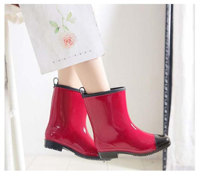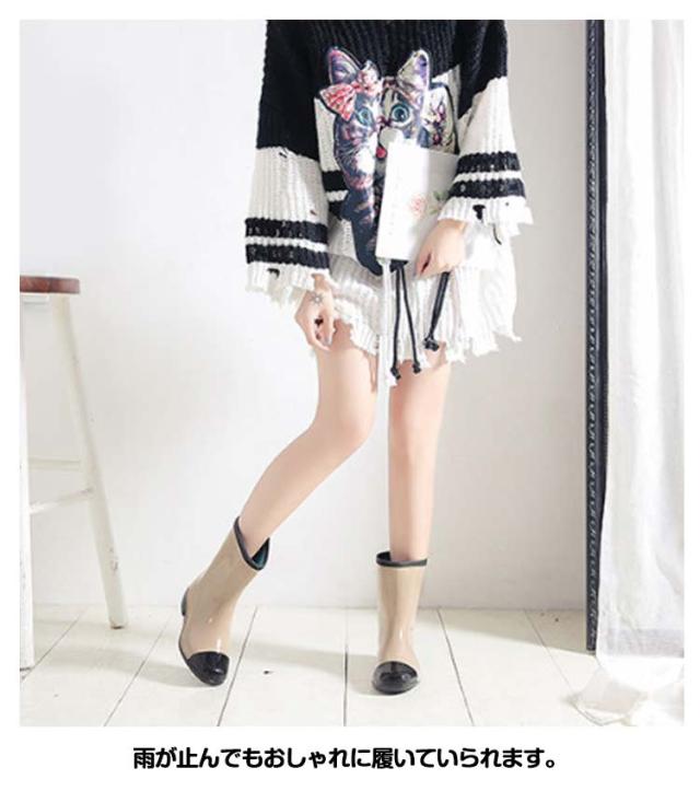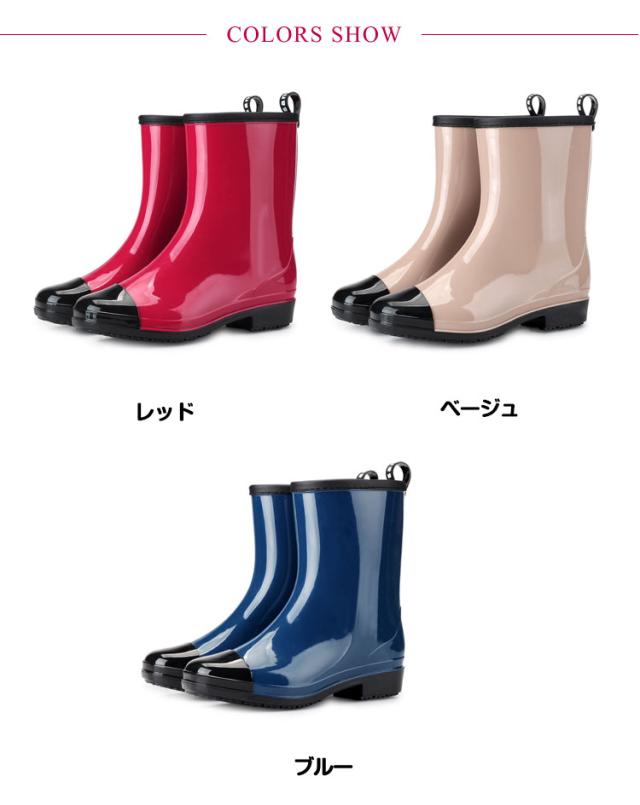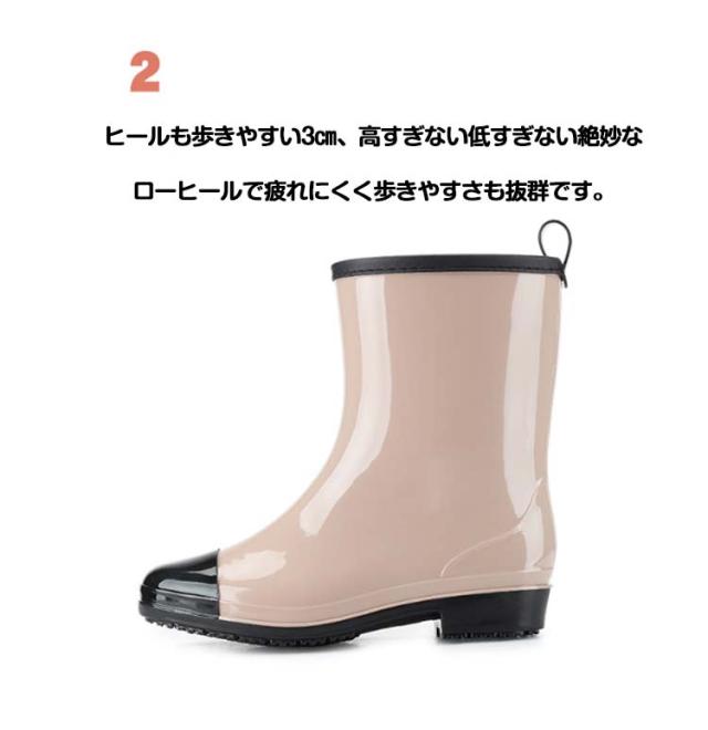 ミドル丈 レインシューズ おしゃれ 配色 ショート バイカラー レディース ローヒール 長靴 ブーツ レインシューズ かわいい 完全防水 軽量 防滑 雨の日 ショートブーツ レインブーツ 疲れない 歩きやすい 滑らない 防水ブーツ 履きやすい 通学 通勤