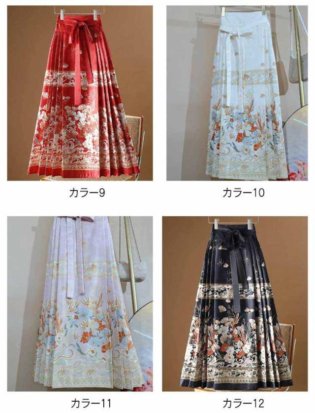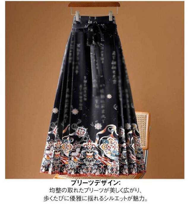 エレガント 馬面スカート ロングスカート ラップスカート 馬面スカート プリーツスカート サーキュラースカート ロング 漢服 エスニック シック スカート チャイナ服 マミアンスカート 民族風 ナチュラル 復古風 写真撮影 中国宮廷風