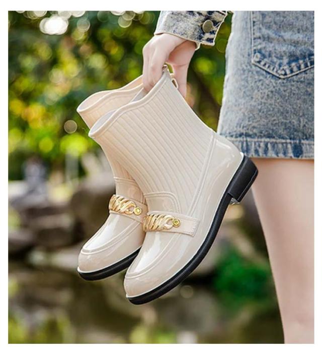 | おしゃれなローファー風のレインショートブーツ。 すっきりとしたシルエットでどんなスタイルでも合わせやすい! PVC素材なので柔らかな履き心地もポイント。水や汚れをはじくのでお手入れしやすい。 ソールは滑りにくい仕様で悪天候時も安心。 ヒールも歩きやすい3cm、高すぎない低すぎない絶妙なローヒールで疲れにくく歩きやすさも抜群です。 雨が止んでもおしゃれに履いていられます。 | |