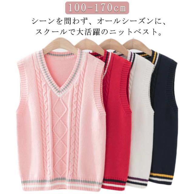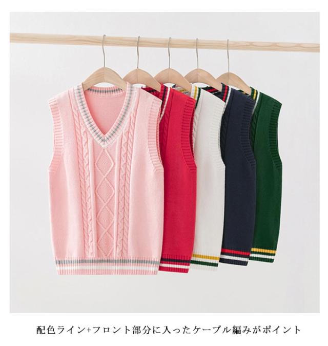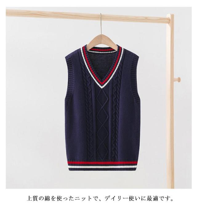 ケーブル編み キッズ 卒業式 男の子 ニット ニットベスト 子ども スクールベスト Vネック 入学式 小学生 ジュニア ニットベスト 学園服 卒園式 通園 ベスト 子供服 入園式 フォーマル 演奏会 通学 ニット セーター ネイビー 紺 白