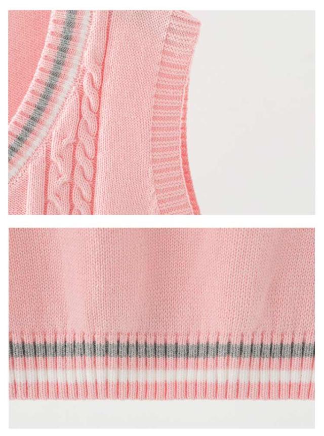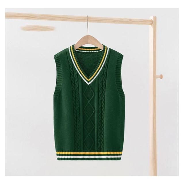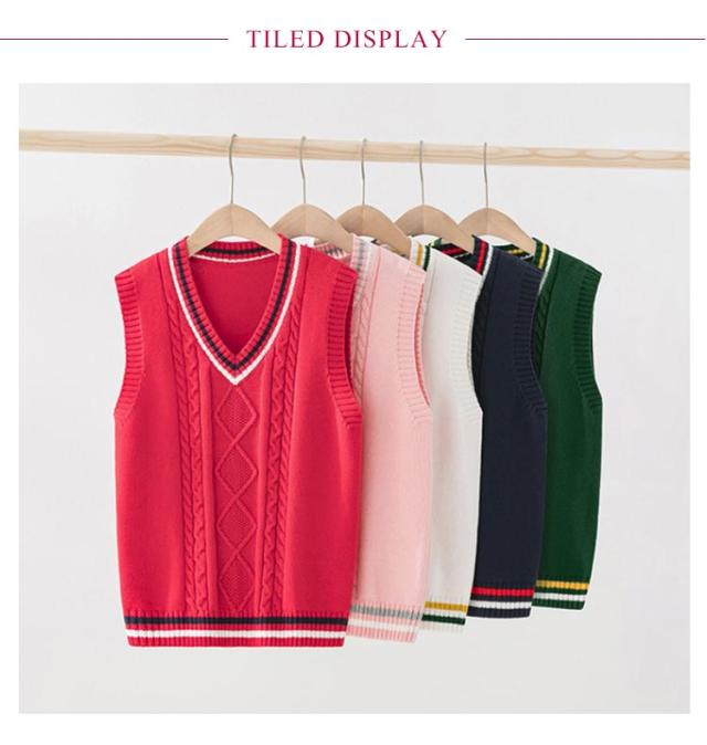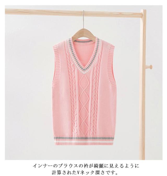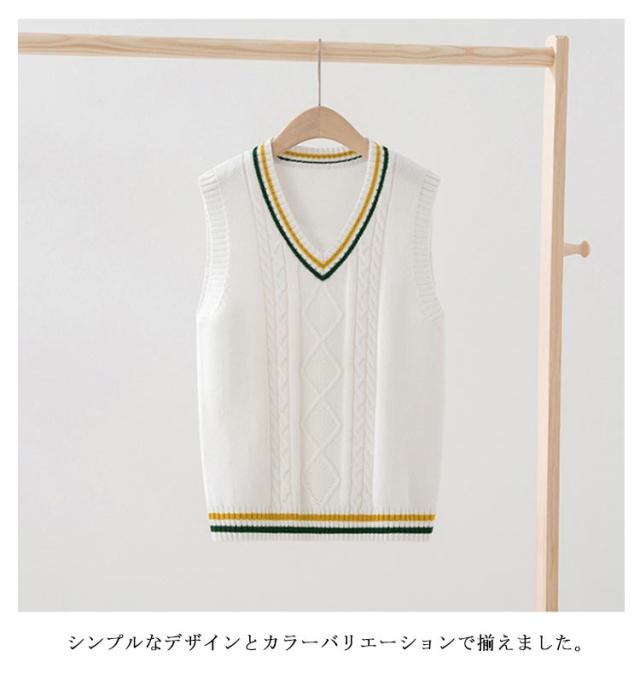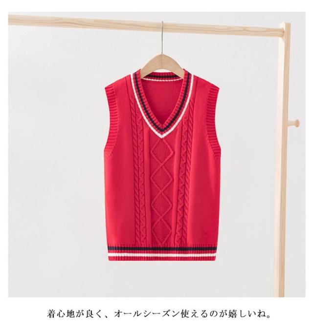 | 【100cm 110cm 120cm 130cm 140cm 150cm 160cm 170cm】 シーンを問わず、オールシーズンに、スクールで大活躍のニットベスト。 配色ライン+フロント部分に入ったケーブル編みがポイント 着心地が良く、オールシーズン使えるのが嬉しいね。 インナーのブラウスの衿が綺麗に見えるように計算されたVネック深さです。 シンプルなデザインとカラーバリエーションで揃えました。 上質の綿を使ったニットで、デイリー使いに最適です。 | |