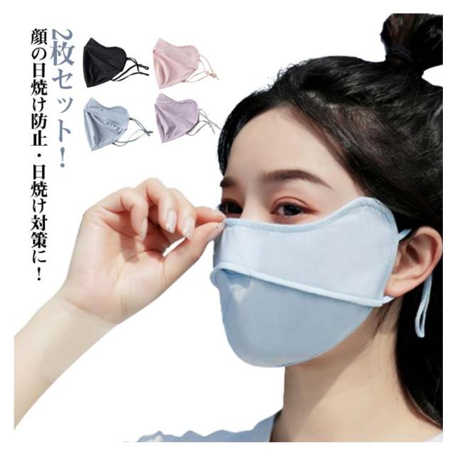 小顔効果 日焼け防止 フェイスカバー UV ランニング uvカット 日よけ 息苦しくない 薄手 おしゃれ スポーツマスク 顔 2枚セット フェイスカバー レディース 紫外線対策グッズ テニス ジョギング 接触冷感 ひんやり お出かけ 夏用 無地