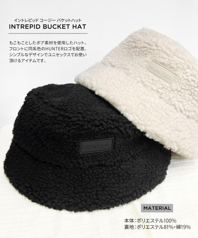 ハンター 帽子 レディース ハット ボア 黒 白 おしゃれ お洒落 かわいい もこもこ ふわふわ あったか 防寒 雪 冬 カジュアル フェミニン アウトドア ボアハット ブラック ホワイト ウィロー HUNTER INTREPID BUCKET HAT イントレピッド コージー バケットハット HR10102