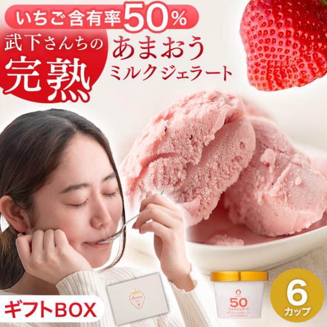 武下さんちの“完熟” あまおうミルクジェラート “VIPボックス(白)付” 究極いちご含有率50% 6個 ギフト いちご 福岡県 ミルク ジェラート アイス アイスクリーム シャーベット カップアイス 苺 イチゴ 果物 ギフトセット 無着色 完熟 敬老の日