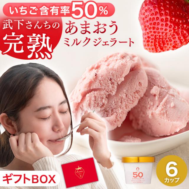 武下さんちの“完熟” あまおうミルクジェラート “VIPボックス(赤)付” 究極いちご含有率50% 6個 ギフト いちご 福岡県 ミルク ジェラート アイス アイスクリーム シャーベット カップアイス 苺 イチゴ 果物 ギフトセット 無着色 完熟 敬老の日