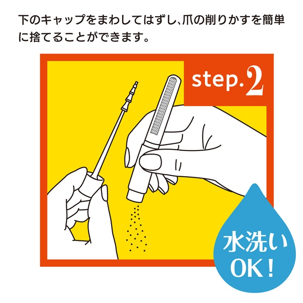 | カットから仕上げまでこれ1本! 爪を削っているのに削りカスが落ちない! |