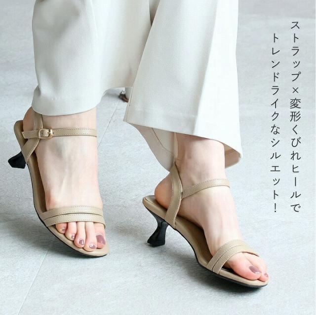 ・ストラップ×変形くびれヒールでトレンドライクなシルエット!