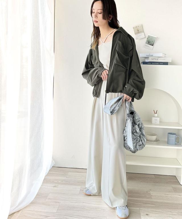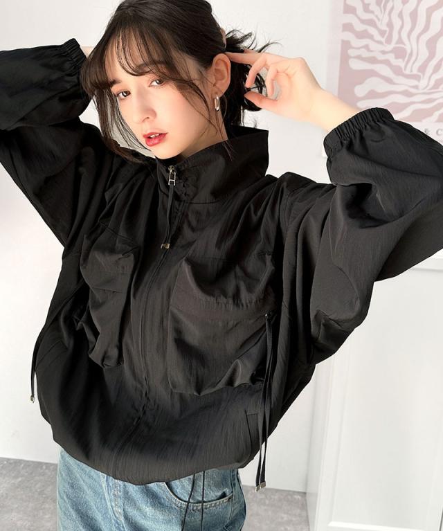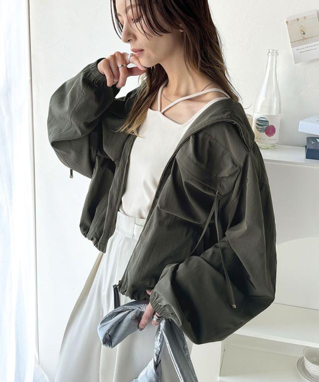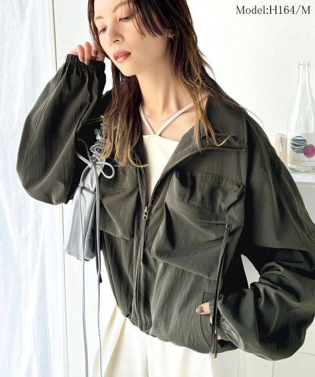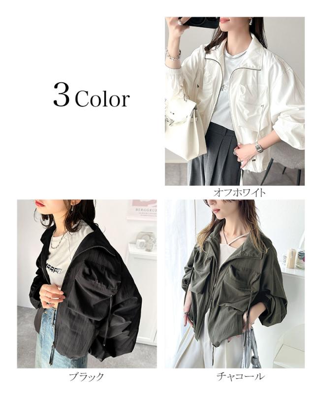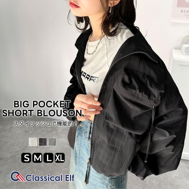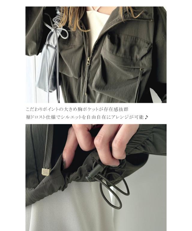 クラシカルエルフ春新作 アウター ブルゾン レディース ショート丈 ビッグシルエット トレンド ビッグポケット 裾ドロスト仕様 カジュアル ミリタリー 胸ポケット レトロ シンプル メンズライク 大人カジュアル 微光沢素材 大きいサイズ 2026ss ce1260344