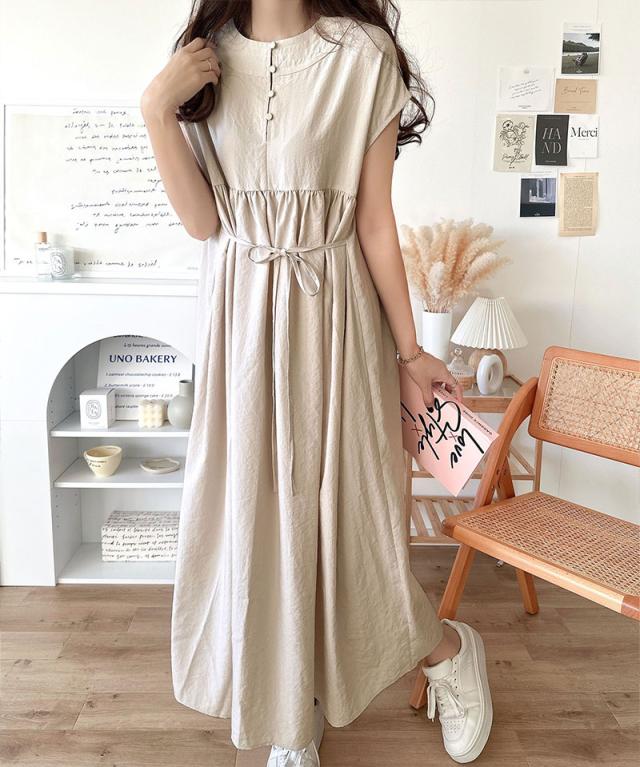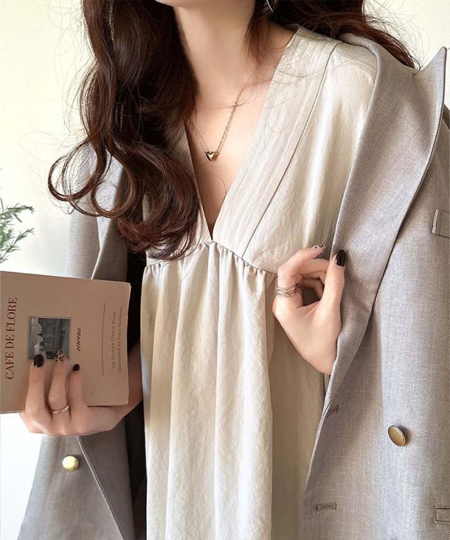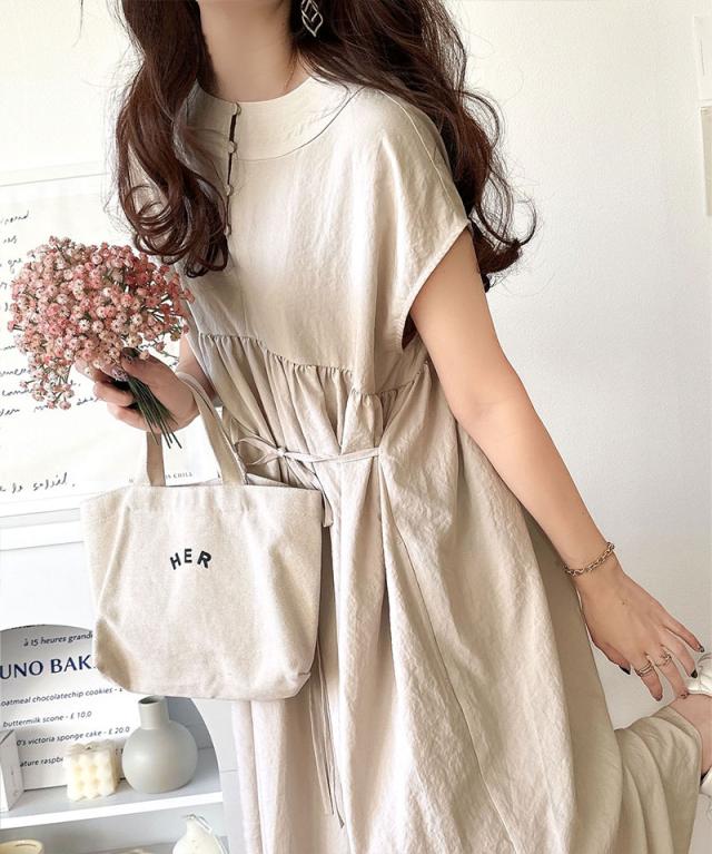 洗練された大人の抜け感を演出するギャザーワンピース。