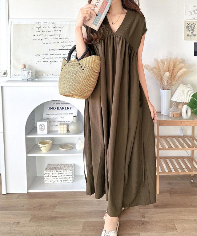 ★大人のナチュラルスタイル。前後2WAYギャザー使いロングフレアワンピース★