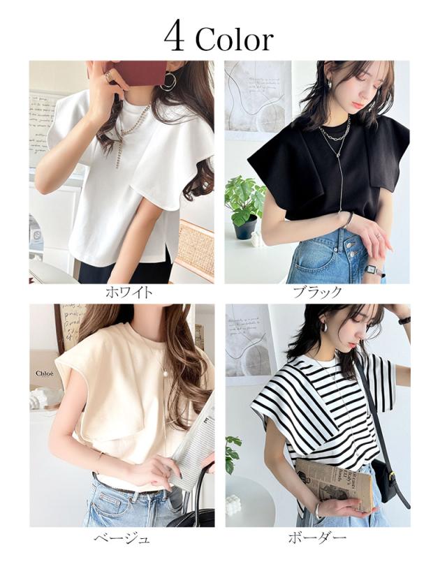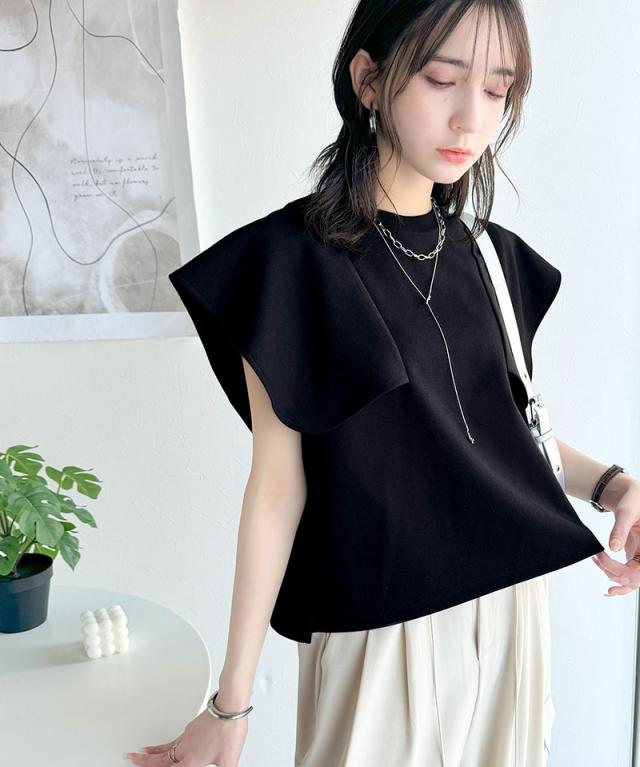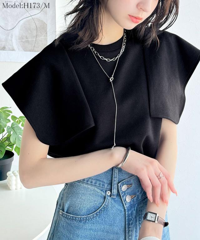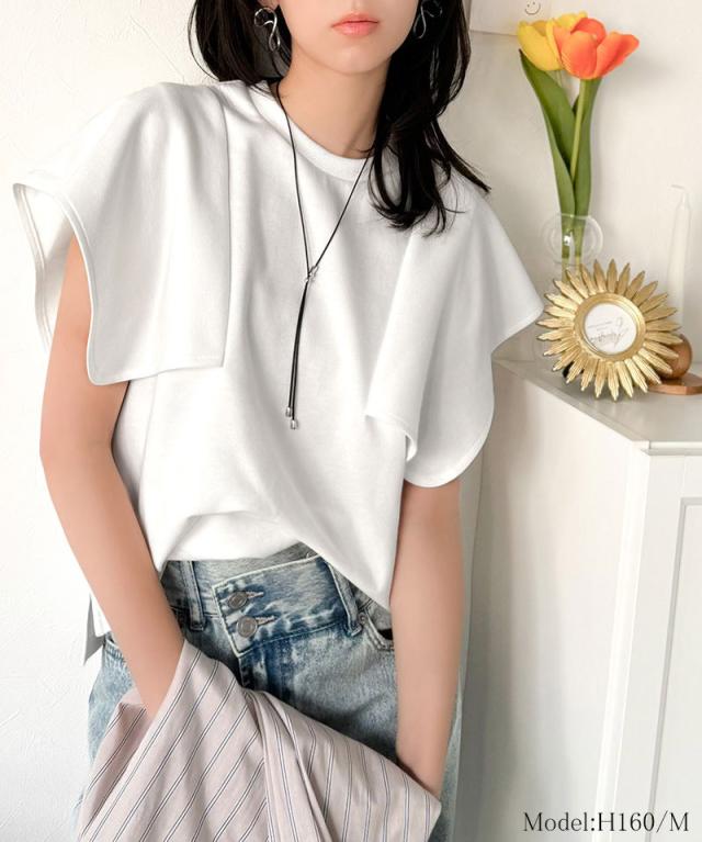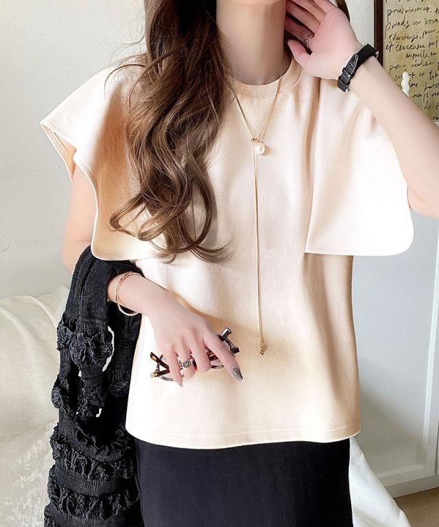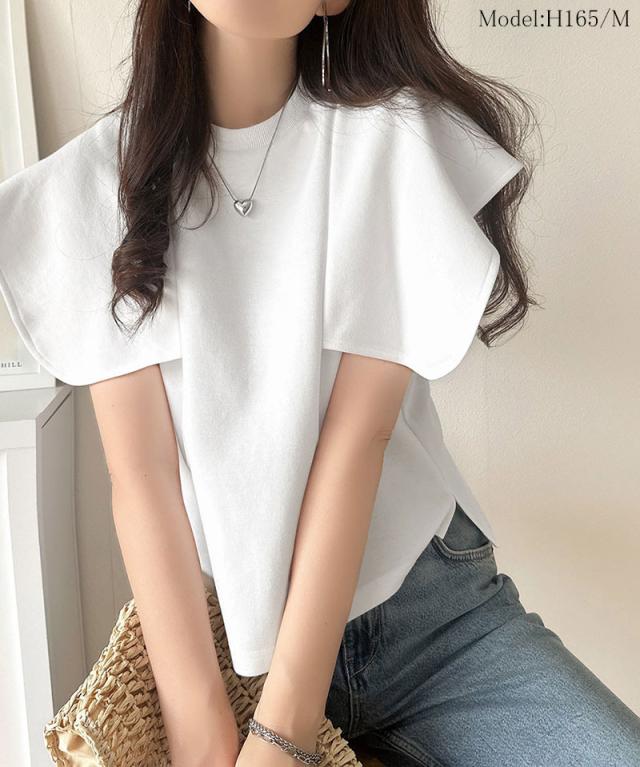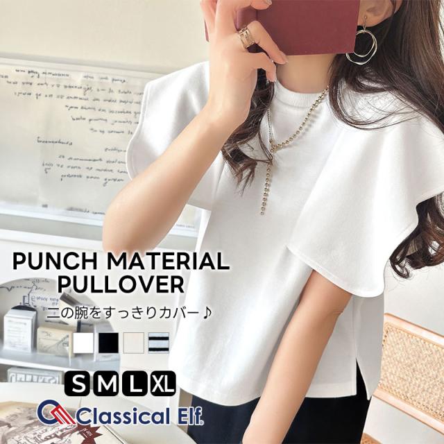 ★華奢見せにトレンドをプラス。ハンカチスリーブポンチ素材カットソープルオーバー(半袖)★