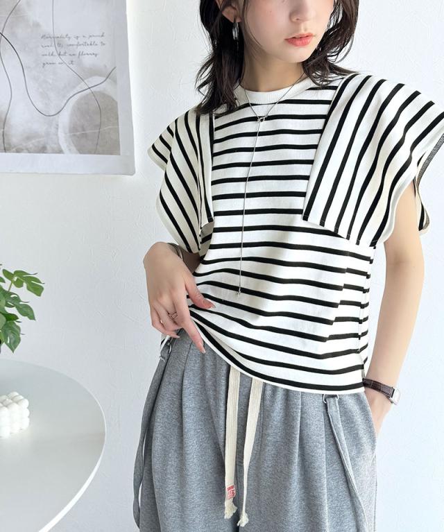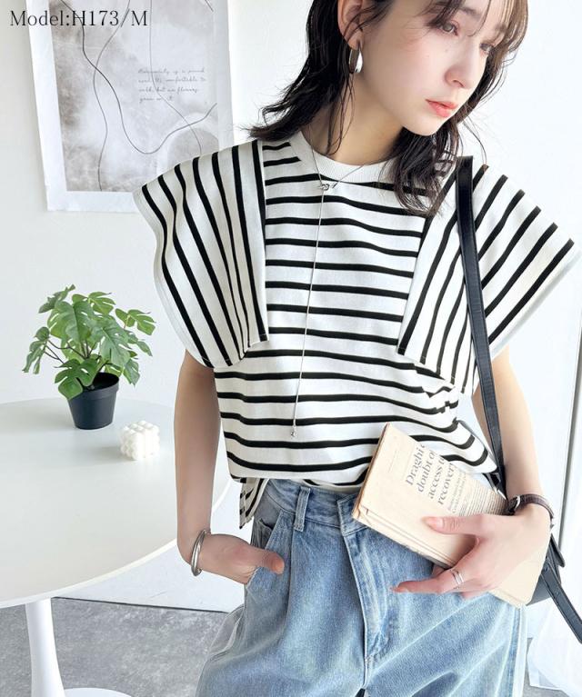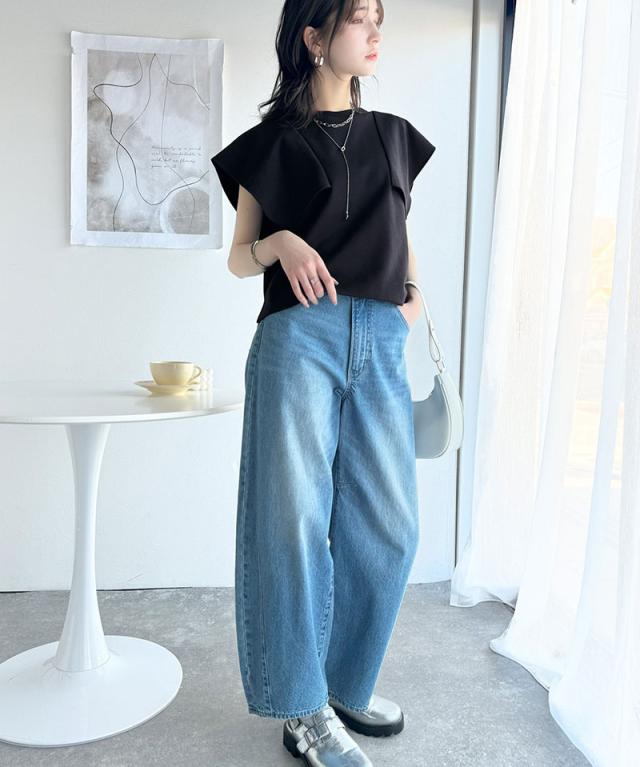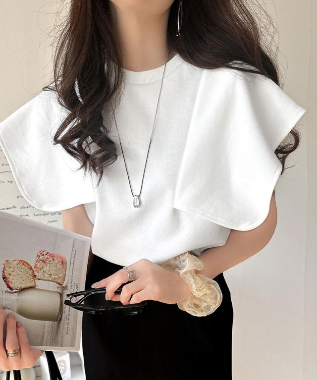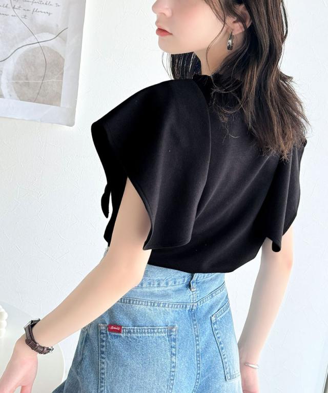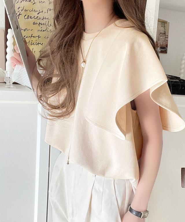 ★華奢見せにトレンドをプラス。ハンカチスリーブポンチ素材カットソープルオーバー(半袖)★