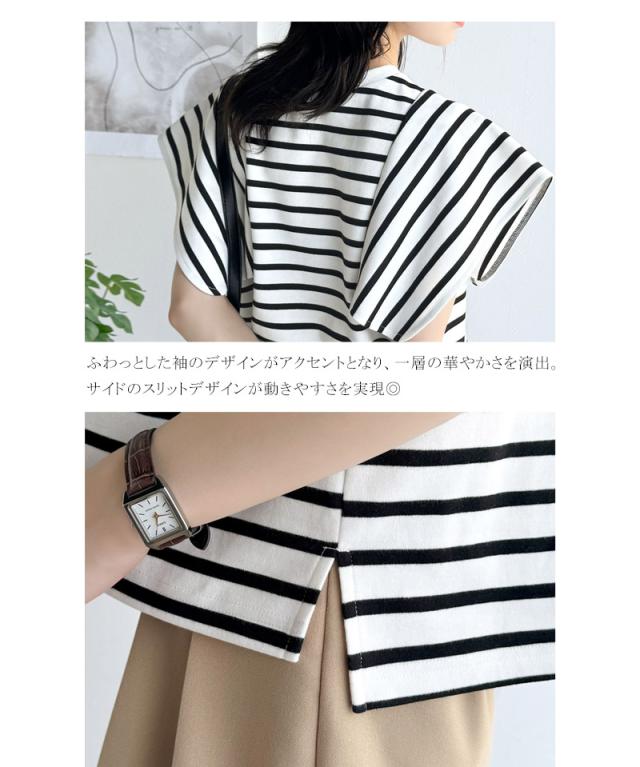 クラシカルエルフ冬新作 トップス Tシャツ レディース カットソー プルオーバー 半袖 ハンカチスリーブ ポンチ素材 二の腕カバー 華奢見せ トレンド 裾スリット入り 滑らか シンプル カジュアル 華やか 優雅 フェミニン 大きいサイズ 2025ss ce1020195
