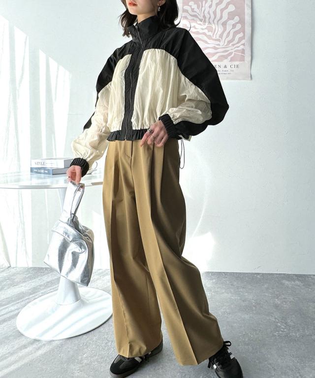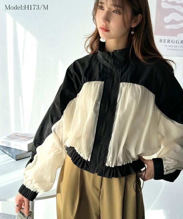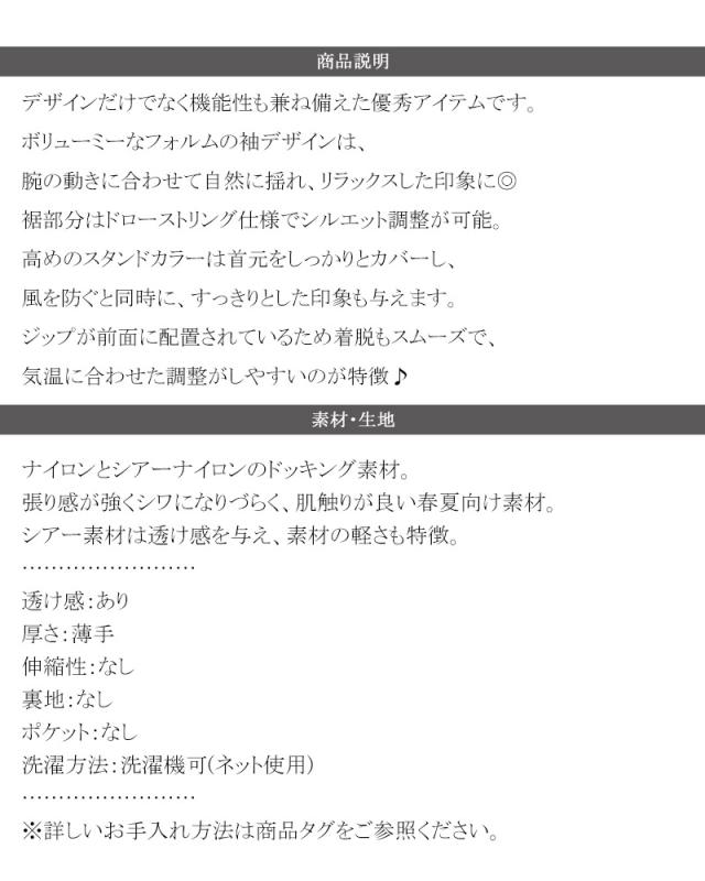 クラシカルエルフ冬新作 アウター ブルゾン レディース 軽量 スタンドカラー ナイロン 異素材 スポーツテイスト カジュアル スポーティ シアーナイロン ギャザー 裾ドローストリング仕様 ボリューミー リラックス 前ジップ 大きいサイズ 2025ss ce1020207