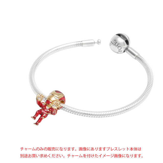 パンドラ PANDORA Marvel The Avengers Iron Man Charm ブレスレットチャーム 760268C01 レディース ゴールド ブランド ◆アイアンマンのチャーム、素晴らしいです!マーベル・シネマティック・ユニバース(MCU)への愛を込めたデザインは、ファンにとって必見のアイテムです。手塗りのエナメルと14kゴールドプレーティングで表現されたアイアンマンのスーツは、まさにアイコニックで、輝きを放っています。手のひらにあしらわれたキュービックジルコニアも、ディテールにこだわった美しさを感じさせます。 「Find your power」というメッセージがヘルメットの裏側に刻まれている点も、アイアンマンの力強さや、個々の力を信じる重要性を象徴していて、心に残ります。MCUのファンであれば、このチャームを身につけることで、アイアンマンや他のヒーローたちと一緒にそのパワーを感じることができそうですね。Pandora Momentsのスネークチェーンブレスレットと組み合わせれば、まさに自分だけのヒーローの世界を作り上げることができそうです!